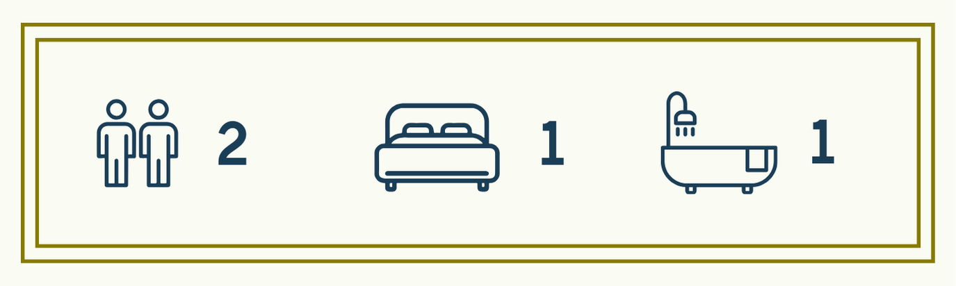 The sitting area includes two comfortable armchairs and a dining table, offering the perfect place to unwind after a day spent exploring the surrounding area. Here you can relax with a glass of wine while watching the atmosphere of the square shift throughout the day.