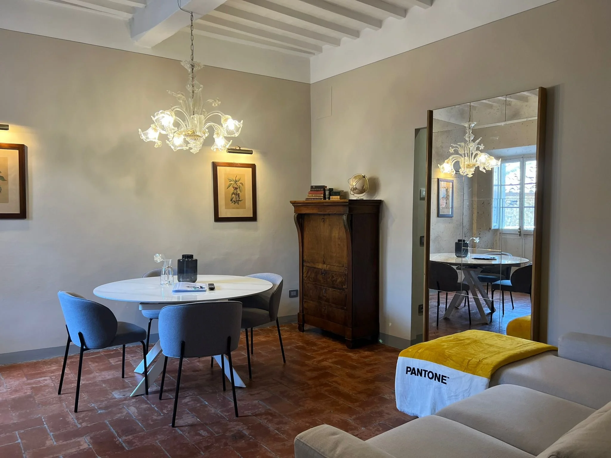 Nestled in the historic heart of Cortona, Casa Roma is an elegant third-floor apartment that seamlessly blends modern comfort with classic Tuscan charm. Spacious and thoughtfully designed, the home features two inviting bedrooms, two stylish bathrooms, and a fully equipped kitchen that flows into a cozy, welcoming living area.