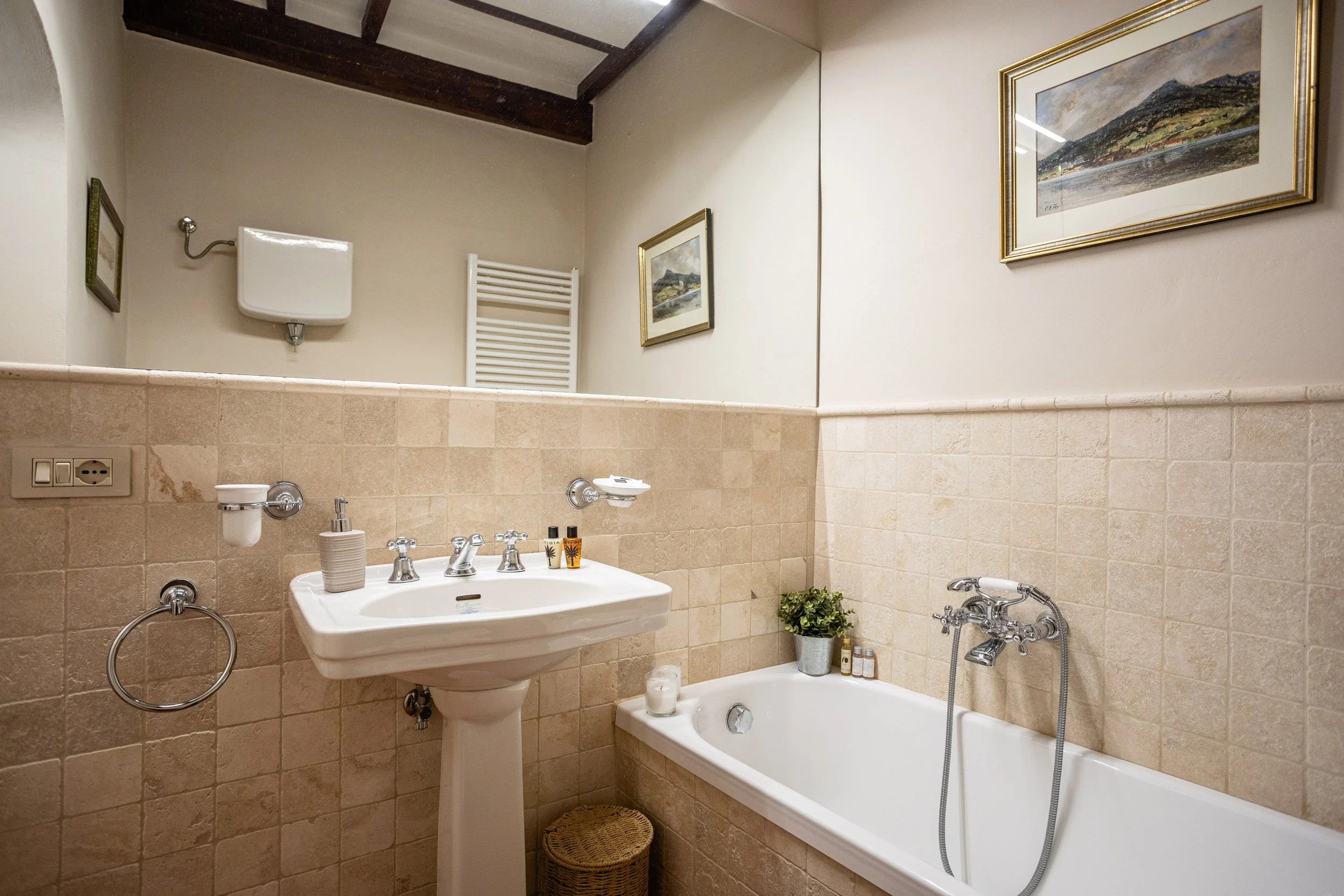 Inside, traditional features—exposed wooden beams, terracotta floors, and stone accents—create a warm and inviting atmosphere. The comfortable living room is perfect for unwinding after a day of exploring Cortona’s winding streets and historic sites. The well-equipped kitchen pairs modern amenities with rustic charm, making it easy to prepare meals with fresh local ingredients.