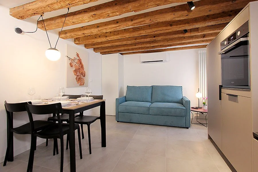 Nestled in the serene residential district of Santa Croce, Casa Virna is a beautifully restored apartment offering a perfect blend of modern comfort and timeless Venetian charm. This elegant one-bedroom, one-bathroom retreat features an open-concept living area seamlessly integrated with a fully equipped kitchen, creating a welcoming space to unwind after a day of exploration.