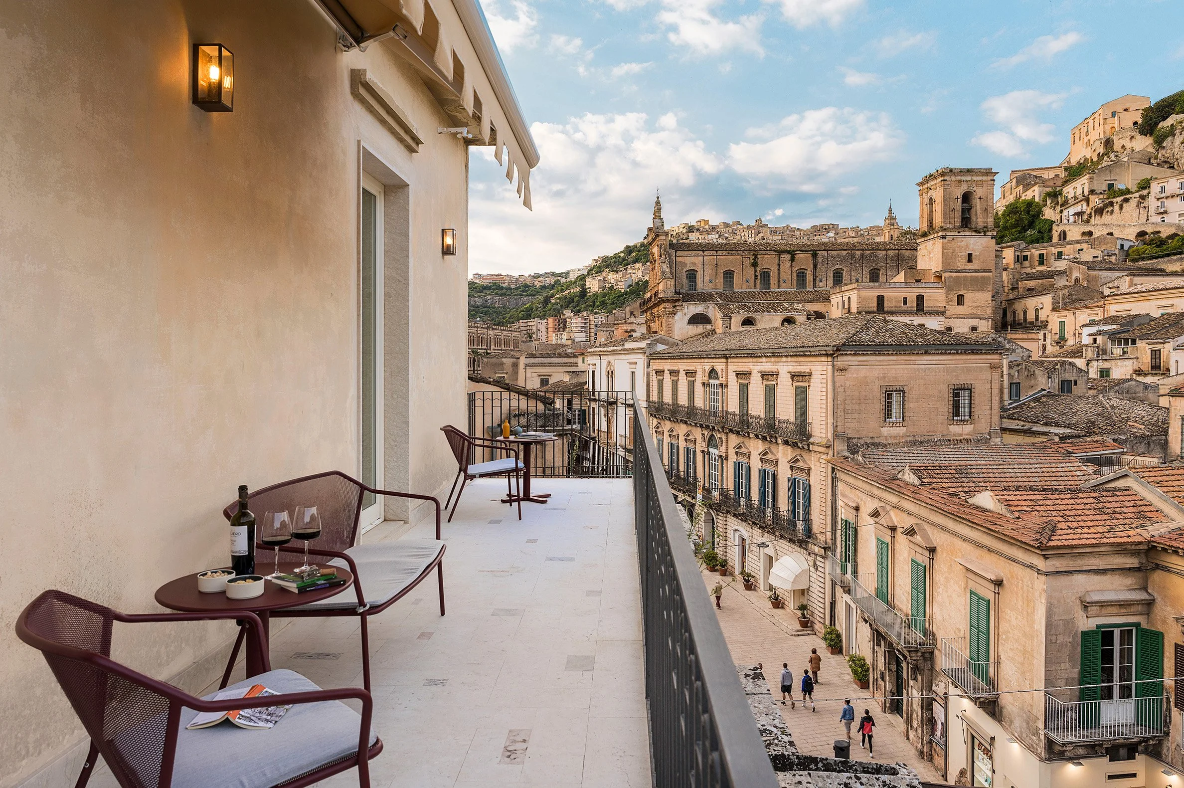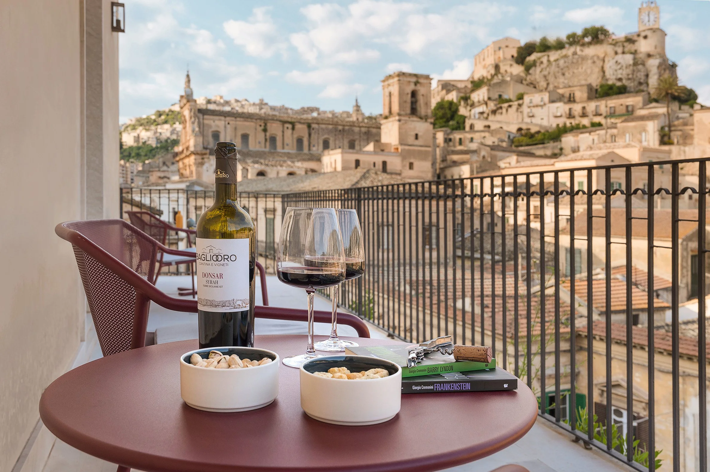 The private panoramic terrace is the heart of the home, perfect for morning espresso, sunset aperitivo, and evenings under the stars. With Modica’s cafés, chocolate shops, and historic piazzas just steps away, Casa Viste offers a front-row seat to the culture, cuisine, and charm of southeastern Sicily.