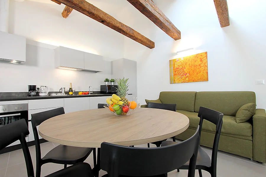 Casa Viviana offers a meticulously restored apartment in Venice's serene residential district of Santa Croce, right in the historic heart of the city. This modern retreat features one bedroom, one bathroom, and an open-plan living room integrated with a fully equipped kitchen. The space seamlessly blends comfort with the charm of Venetian architecture, providing a tranquil haven amidst the bustling city.