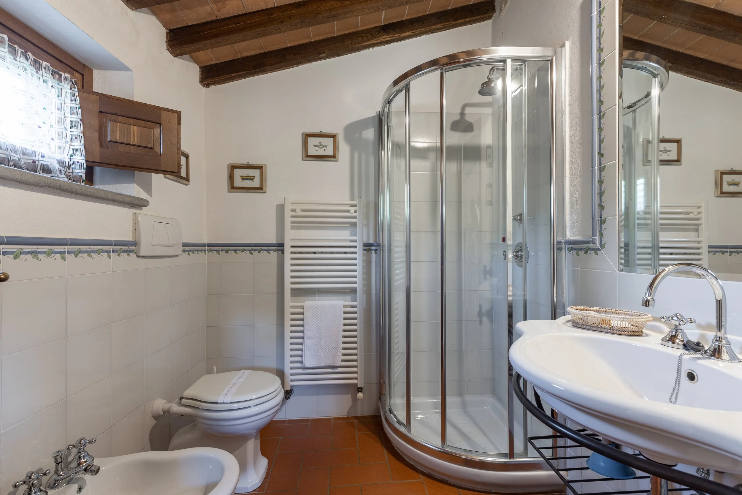 Villa Simonetta comprises two distinct structures: the primary villa, subdivided into two separate apartments, each with its own private entrance and garden. Both apartments are elegantly furnished in the classic Tuscan style, showcasing meticulous attention to detail and comfort.
