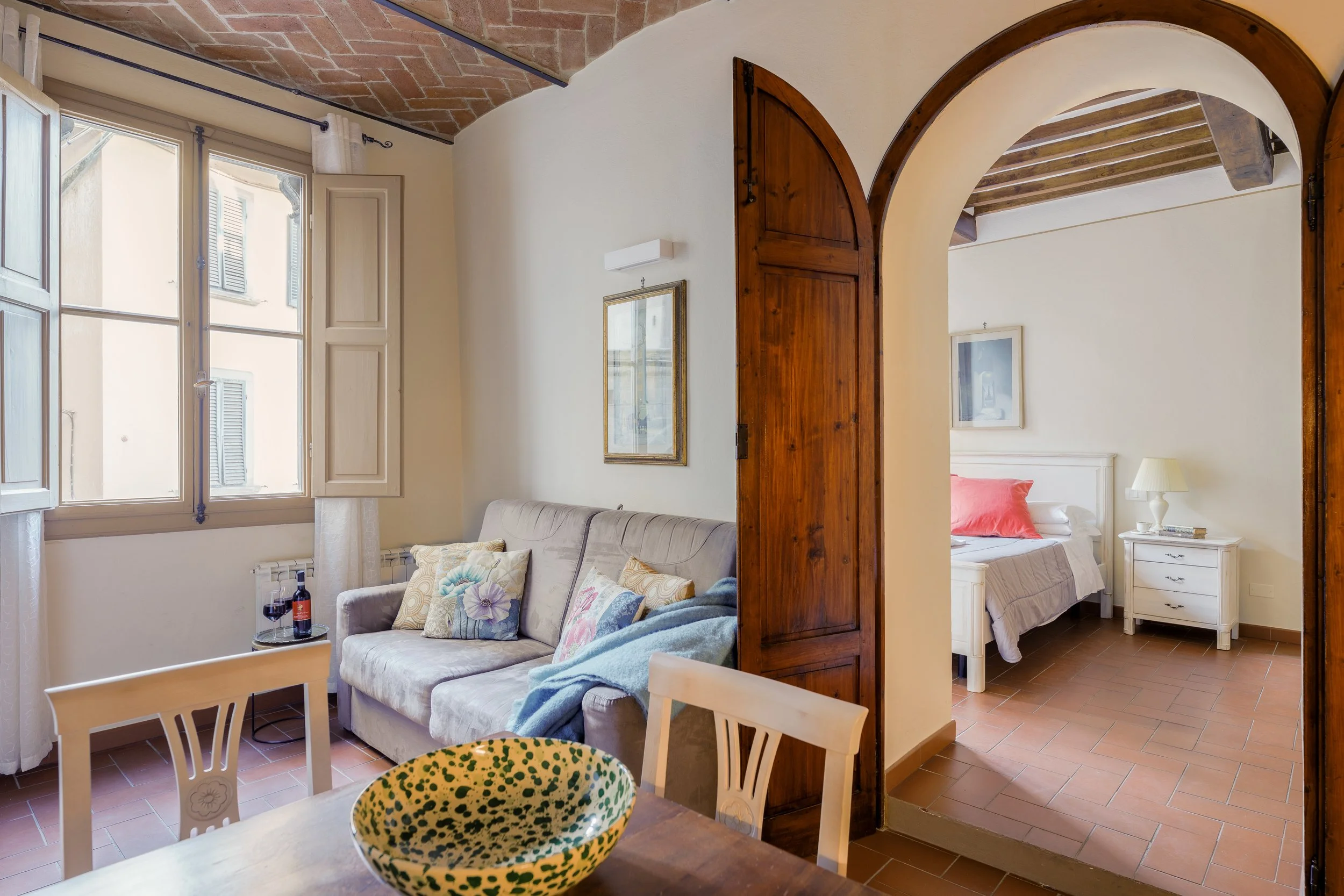 Spend seven nights in an artfully curated one-bedroom flat in the heart of Cortona, just minutes from cafés, museums, boutiques, and Renaissance landmarks.