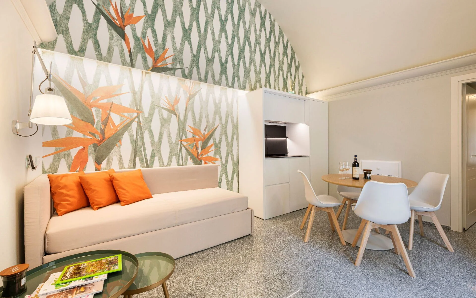 Stay in the heart of Florence's historic center perfectly positioned between the Ponte Vecchio and Palazzo Pitti. Immerse yourself in the romance of Florence, Italy, the birthplace of the Renaissance. Your accommodations will be a contemporary 1-bedroom, 1-bathroom flat for two, nestled at the heart of the city's artistic and architectural marvels. This elegant space is lovingly restored and situated within a centuries-old historical Palazzo that features a tranquil garden.